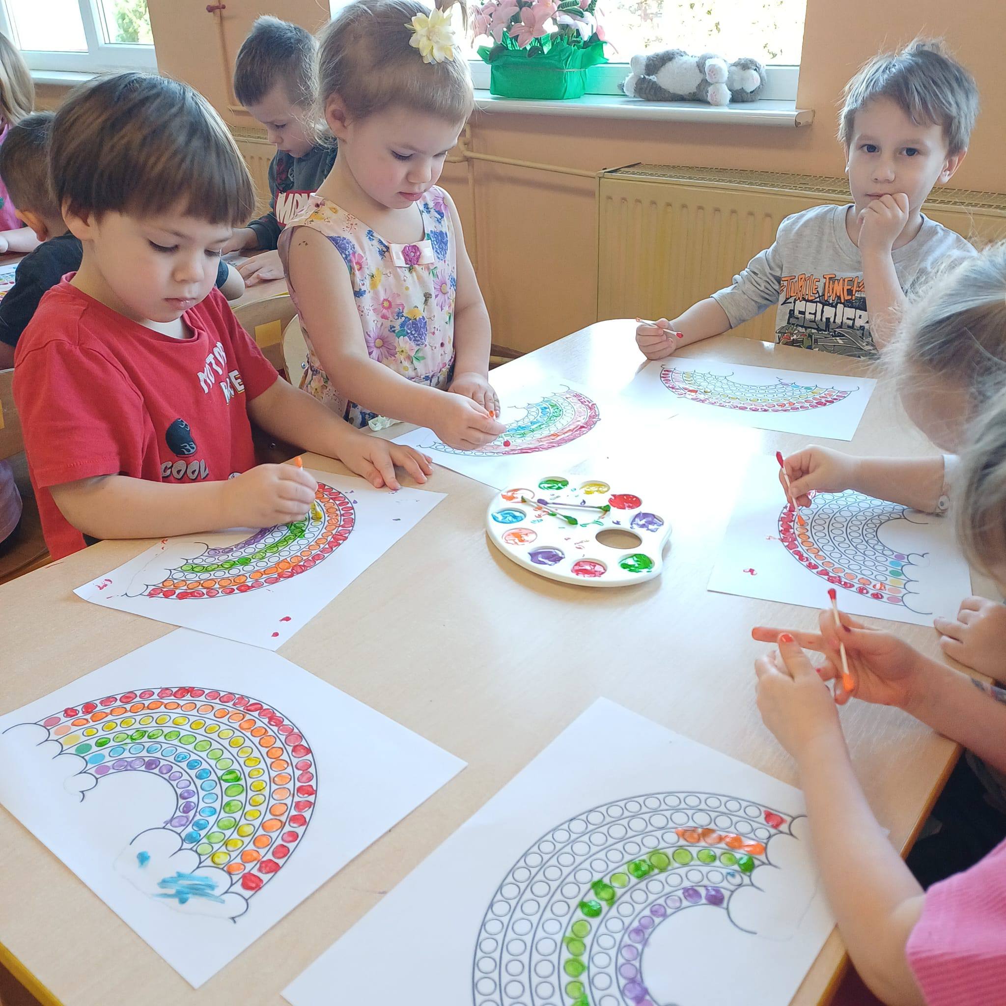 Czasami, choć nie na każdych zajęciach dzieci rysują lub kolorują, choć ma to bardziej na celu wyciszenie po tanecznych szaleństwach.
